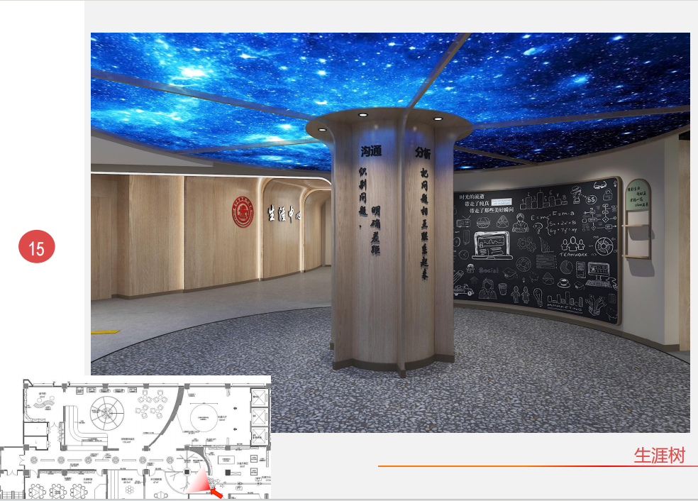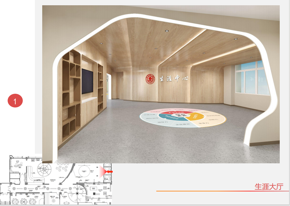博高建材公司配套裝飾項目之交大附中生涯中心設計方案圓滿落地效果圖展示